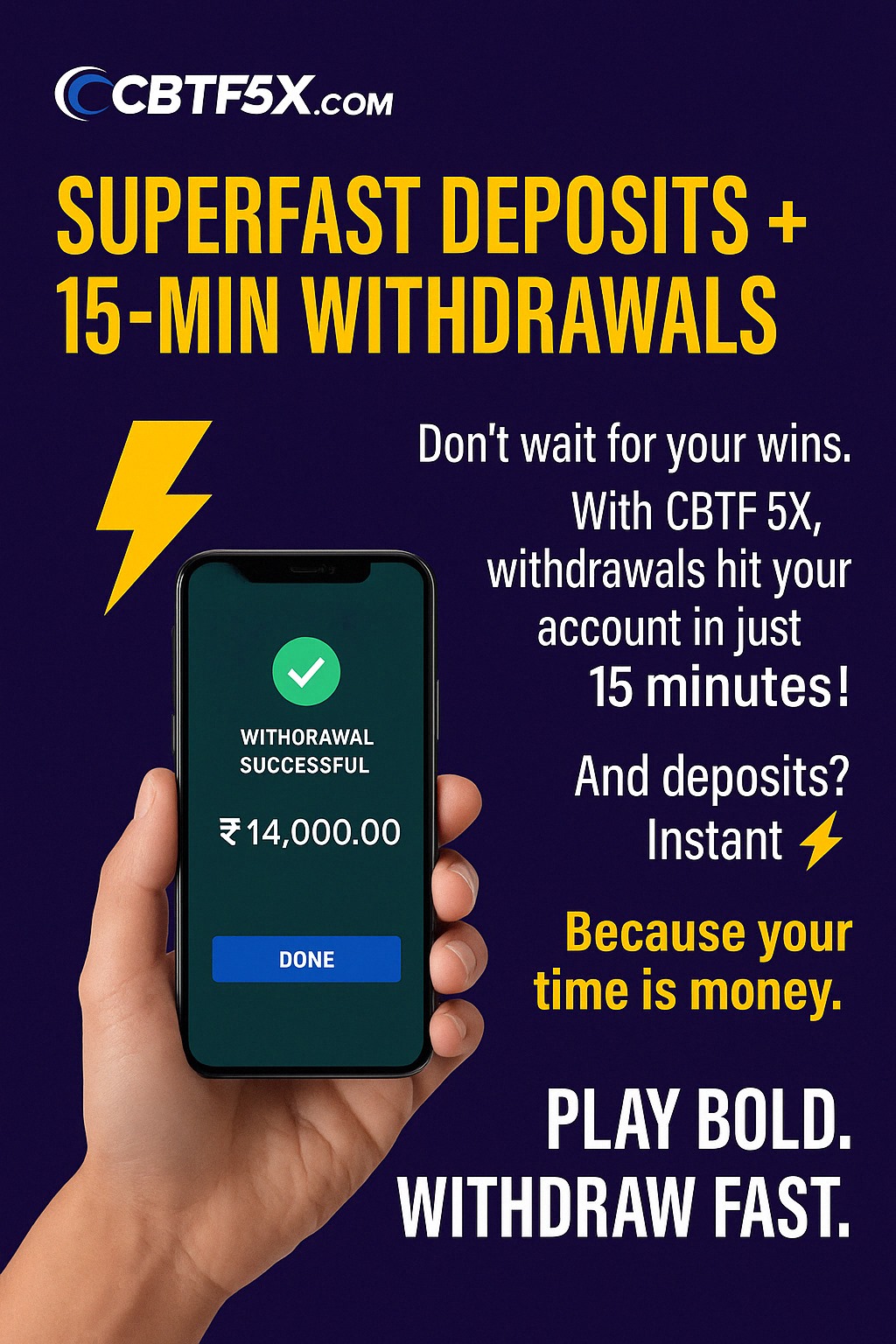 Unlock guaranteed value with CBTF5X! Enjoy a lifetime 5% bonus on every deposit — no limits, no expiry. More bonus means more power to play and win. Join today and make every deposit count!